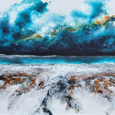 After 40 years in retail design, I now explore mixed media and painting, drawing inspiration from the landscapes and seascapes of Scotland, Derbyshire and Warwickshire. Using unconventional tools like credit cards and acrylic inks, I combine spontaneity with structure to craft dynamic, textured pieces.